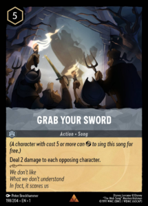 Rounding out our top ten is the first Legendary Action seen in Lorcana. The Return Of Hercules is an Inkable 5 cost Emerald action that says “Each player may reveal a character card from their hand and play it for free”. Against aggressive decks, they are likely to have low cost characters to play. If you are playing a discard focused deck your opponent may not even have cards to reveal. Additionally, we are seeing a lot of end game high-cost characters come out to play in this set, and this could be a way of turning on those gameplans a lot earlier.