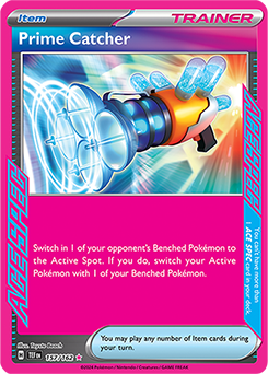 We have some fun one-offs in the deck as well. Energy Lotto and Earthen Vessel help accelerate our draw and energy gain. Additionally, there is one Technical Machine: Turbo Energize to accelerate energy gain even further. We also have a single Lost Vacuum for any pesky attachments, such as Bravery Charm or various Capes – or opposing Booster. And finally, we have our Ace Spec. The Prime Catcher of the deck, allows us to swap in targets of choice, and readying an attacker to take it out in one fell swoop.