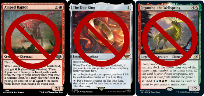 Banned: Amped Raptor; The One Ring; Jegantha, the Wellspring