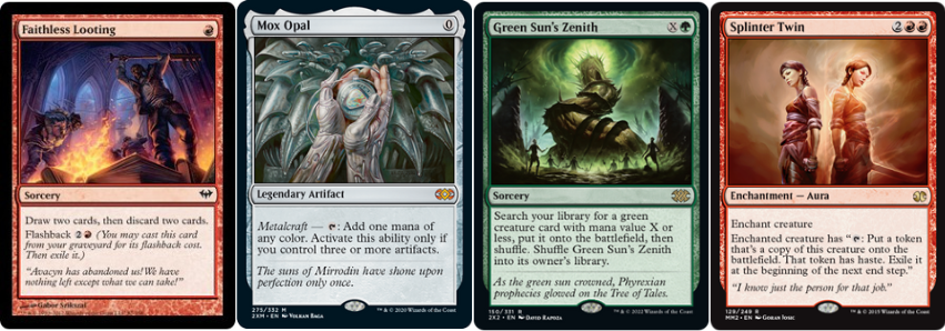 Unbanned: Faithless Looting; Mox Opal; Green Sun's Zenith; Splinter Twin