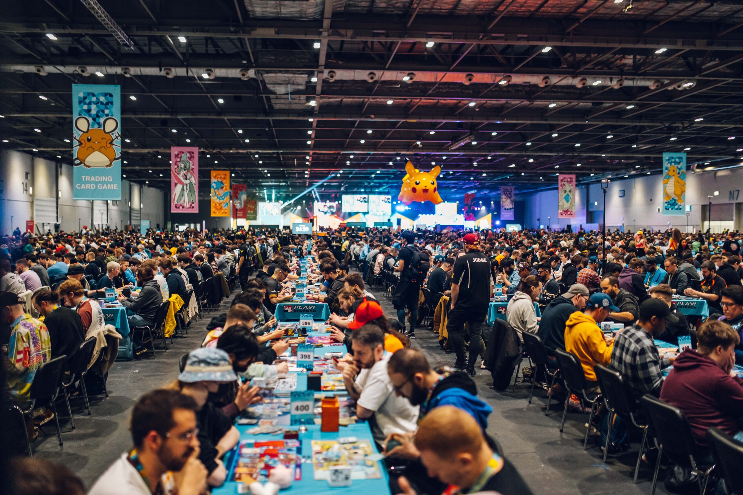 Right in the centre of the main event areas, you could not miss Pokémon’s iconic mascot: A larger than life Pikachu above the main play area watched over all the Trainer battles below. The first section as you walked towards the main stage was the TCG tournament area. Here, players battled it out with their Pokémon decks on their path to become the champion and judges walked the aisles as players declare their Pokémon’s attacks.