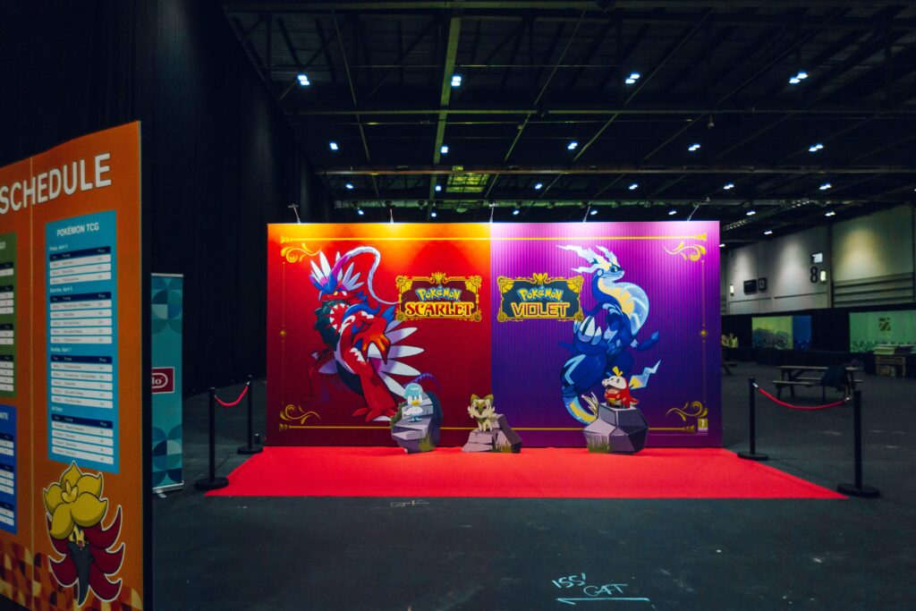 After collecting all items, we walked through Route 1 which presented a beautiful photo opportunity featuring the start of any Trainers journey, and classic Pokémon themes accompanying participants on their way into the main event area. Immediately after, there were even more banners and backdrops to take pictures once again with your favorite Scarlet and Violet legendaries.