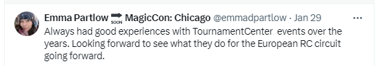 We always welcome feedback! Please send any feedback or questions you may have via email: magic@tournamentcenter.gg