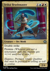 Narset, Jeskai Waymaster guides the Jeskai Way. Jeskai decks love casting multiple spells a turn, snowballing multiple small incremental strengths into large advantages. Jeskai Brushmaster is a good signpost card for this deck archetype, incentivising you to make use of its Prowess ability and the Jeskai Flurry abilities to forge a way through the largest of hoards.