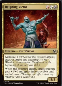 Zurgo leads the Mardu Horde to victory, choosing to overwhelm their opponents with sheer numbers. Mobilize is used quite heavily to swarm the board when attacking. They can’t block us all right? And these 1/1 Warriors don’t have to stay as 1/1s. Mardu has plenty of ways to buff them, give them special keywords, and even Zurgo himself likes to keep them around for a few more turns.