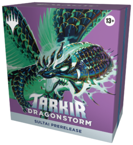Tarkir: Dragonstorm brought back a fan favourite prerelease option, the ability to choose your favourite clan and have an improved chance of building those colours. We have five special packs representing each clan; Abzan, Jeskai, Temur, Mardu, or Sultai. Depending on your event, you may receive a random pack or your choice of one of the five clans.
