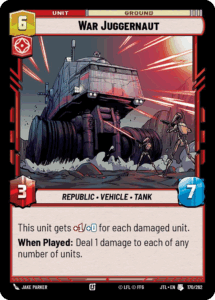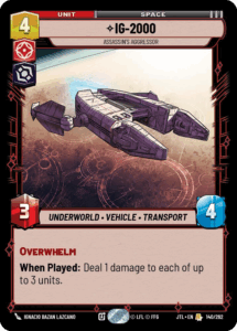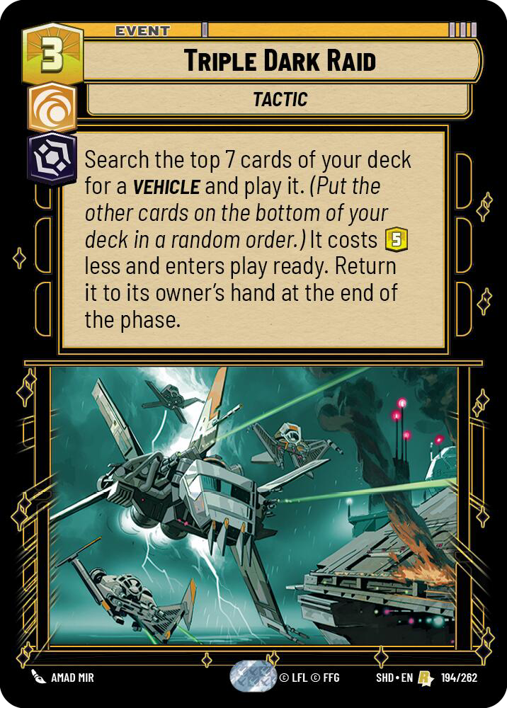 Triple Dark Raid, also a card that was hit in the suspension, was one of the biggest powerhouses in the deck. When Triple Dark Raid was originally released, there were not as many powerful vehicles to hit that could completely change the board state, mostly just Ruthless Raider. However, in the recent sets being able to cheat out War Juggernaut , IG-2000, or even Devastator in the later game could completely flip the script, allowing Triple Dark Raid to push out much more damage on average than a single card should be able to.