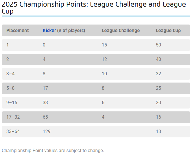 League Challenges are larger tournaments that are held in Swiss rounds and may include a top cut depending on tournament size. Throughout the tournament, you will be paired with players who had a similar performance as you did. For example, if you enter round 4 with 3 wins and 0 losses, you will likely face someone who is also at 3 wins and 0 losses. The same is true for having 0 wins and 3 losses. Occasionally, players will be paired with someone with a slightly better or worse score if there is an uneven number of people. Winning a League Challenge grants you 15 Championship Points.