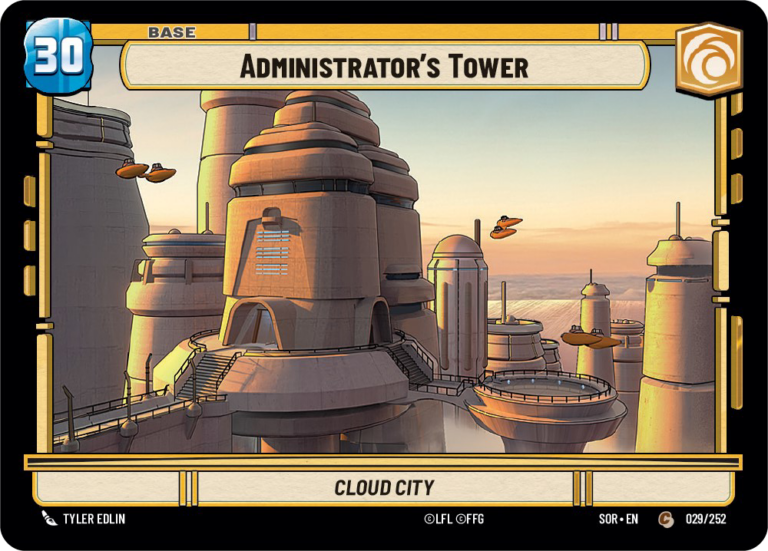 Let’s follow the example given by Star Wars: Unlimited themselves in their starter deck and use Luke Skywalker as our Leader and the Administrator’s Tower as our Base. Our deck now has access to the Cunning, Vigilance, and Heroism aspects. This means that we may play cards of these aspects without incurring any additional costs.