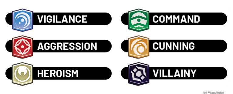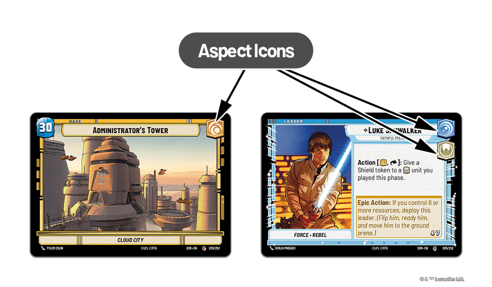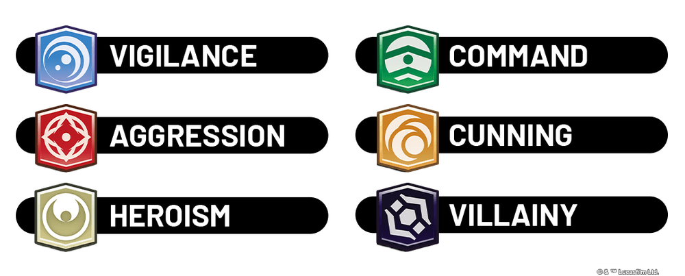 In Star Wars: Unlimited, there are six Aspects. These aspects are Vigilance, Command, Aggression, Cunning, Heroism, and Villainy. In general, when building your deck your chosen Leader will provide two aspects and your Base will provide you with an additional one.
